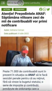 “… peste 71.000 de romani, în situatia de a li se face plângeri penale”. Da, președintele ANAF, a declarat că se pregătește să înainteze peste 71.000 de plângeri penale. Încă nu îmi dau seama daca este vorba de psihoză sau idee delirantă, dar cert este că peste 71.000 de români vor avea plângere penală depusă de un funcționar grăbit. (Ca s-o cităm și pe Laura Stoica, Dumnezeu să o odihnească).