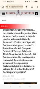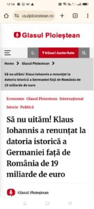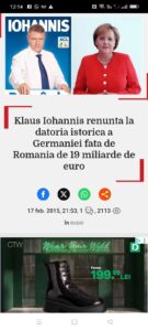 Klaus Johannis a renunțat cu de la sine putere la datoria de război a Germaniei către România, datorie de 19 miliarde de euro. A renunțat de parcă ar fi fost banii lui mă-sa. Nu s-a întâmplat nimic.