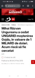 Mihai Răzvan Ungureanu din poziția de Ministru de Externe sub oblăduirea lui Tăriceanu a renunțat la patrimoniul averii Gojdu în favoarea Ungariei, avere lăsată de Emanuil Gojdu pentru ajutorarea studenților români care studiază în străinătate si pentru ajutorarea preoțimii ortodoxe din Transilvania. Așa și? Nu s-a întâmplat nimic.