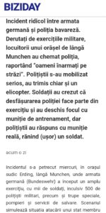 În orașul Erding lângă Munchen s-a desfășurat o aplicație militară care a simulat cum ar trebui să acționeze Germania dacă un stat aliat NATO ar fi atacat. Zis și făcut, au desfășurat pe străzi armata, populația civilă s-a speriat și a chemat poliția, armata a deschis foc asupra poliției (cu muniție de manevră) iar poliția a răspuns cu muniție reală și a fost rănit un soldat.