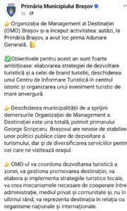 „Organizația de Management al Destinației (OMD) Brașov și-a început activitatea: astăzi, la Primăria Brașov, a avut loc prima Adunare Generală. Obiectivele pentru acest an sunt foarte ambițioase: elaborarea strategiei de dezvoltare turistică și a celei de brand turistic, deschiderea unui Centru de Informare Turistică în centrul istoric și organizarea unui eveniment turistic de mare anvergură. “ etc ….etc …..etc …. am citat din postarea primariei.