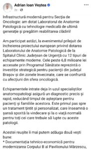 Pe pagina de facebook a domnului președinte al Consiliului Județean Brașov suntem informați că oncologia brașoveană a primit dotări noi de ultimă generație în valoare de milioame de lei. Cităm : “Infrastructură modernă pentru Secţia de Oncologie: am dotat Laboratorul de Anatomie Patologică cu tehnologie medicală de ultimă generaţie şi pregătim reabilitarea clădirii! Am participat astăzi, la evenimentul prilejuit de încheierea proiectului european privind dotarea Laboratorului de Anatomie Patologică de la Spitalul Clinic Județean de Urgență cu 12 tipuri de echipamente moderne. Cele peste 6,8 milioane lei accesate prin Programul Sănătate reprezintă o investiție strategică pentru pacienţii din judeţul Braşov şi din zonele învecinate, care se confruntă cu afecţiuni din sfera oncologică. Echipamentele intrate deja în uzul specialiştilor anatomopatologi asigură un diagnostic precis și rapid, reducând timpul de așteptare pentru pacienţi şi familiile acestora. Este primul pas spre un tratament ţintit şi personalizat, care înseamnă o şansă sporită la vindecare şi la o viaţă normală pentru toţi cei care trebuie să lupte cu aceste patologii. ….“ Faptul că se mărește arsenalul de lupta împotriva bolii secolului nu poate decât să ne bucure. Dar ce facem cu bolnavii de cancer? În urma refomelor lui Bolojan, aceștia suferă mai tare.