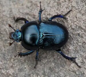 Există un gândac mare, lucios și verde închis aproape negru. Se numește gândacul de bălegar. Se hrănește cu bălegar de vacă. Nu contează cât e de mare bălegarul, gândacul nostru sapă galerii dintr-o parte în alta.