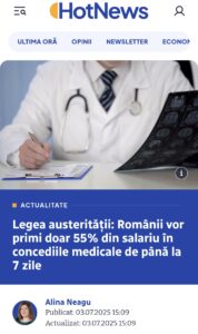 Pentru certificatele medicale emise în perioada 2026-2027, prima zi de boală rămâne neplătită. Absurd și fără niciun pic de compasiune pentru români. Angajatorul plătește acum pentru zilele 2-6, iar începând cu ziua a 7-a, indemnizația este suportată din Fondul Național Unic de Asigurări Sociale de Sănătate. Chiar dacă nu este plătită, prima zi trebuie înregistrată în continuare. Deși inițial măsura s-a aplicat generalizat, Parlamentul și Ministerul Sănătății lucrează la o listă de excepții : care să includă, de exemplu, pacienții oncologici, urgențele medico-chirurgicale sau concediile de maternitate, dar bineînțeles se “lucrează” sine die fără nici o finalitate. Abominațiile astea au fost contestate de Avocatul Poporului la Curtea Constituțională și au generat critici aspre din partea asociațiilor de pacienți cronici. Dar pe ei nu-i interesează nici criticile, nici contestațiile nici dramele si suferințele romănilor. Ei merg mai departe.